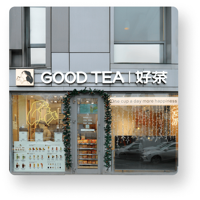 GOOD TEA — производственная компания, специализирующаяся на выпуске и продаже чая. В 2011 году в Китае была открыта сеть чайных под брендом GOOD TEA, а в 2024 году компания приняла решение выйти на международный уровень. Опыт ведения бизнеса в Китае и наличие собственного производства ингредиентов для напитков дают компании конкурентные преимущества.