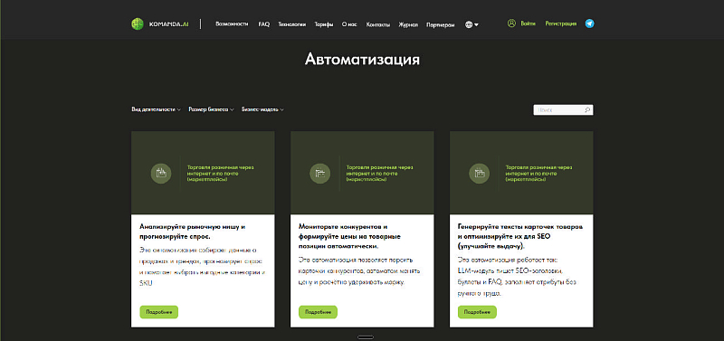Komanda.ai — это понятный сервис на основе передовых моделей искусственного интеллекта, помогающий малому и среднему бизнесу: