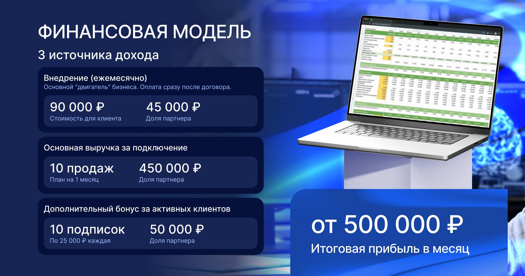 - Мгновенная прибыль: 45 000 рублей с каждого нового подключения.