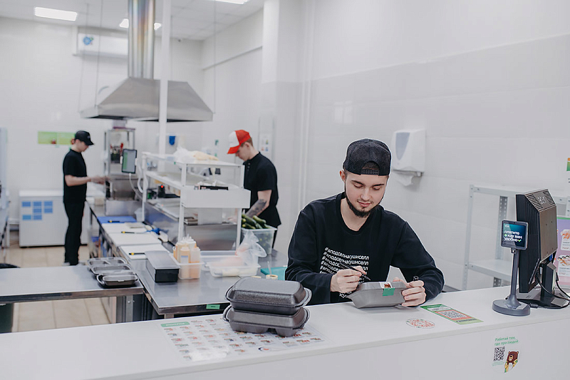 Формат — доставка с зоной самовывоза и концепцией «открытой кухни».