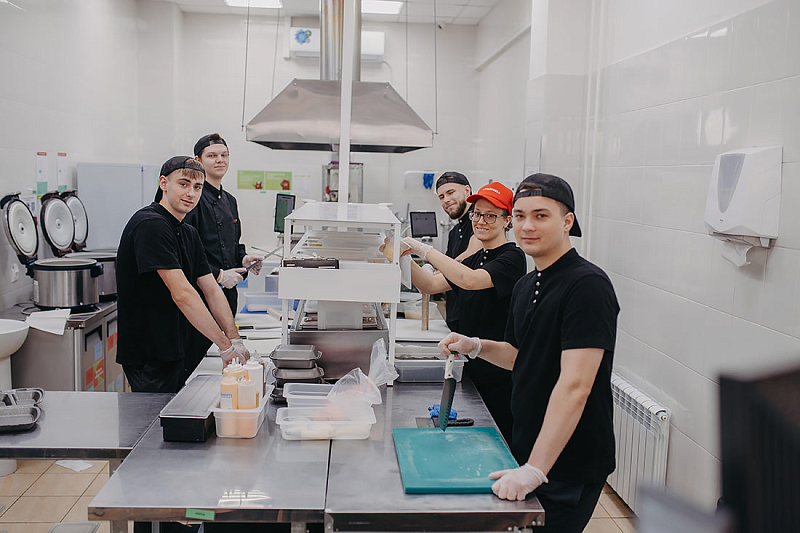 - Вы посетите действующий филиал и познакомитесь с тем, как устроена работа: от кухни и производственных процессов до работы команды и IT‐системы.