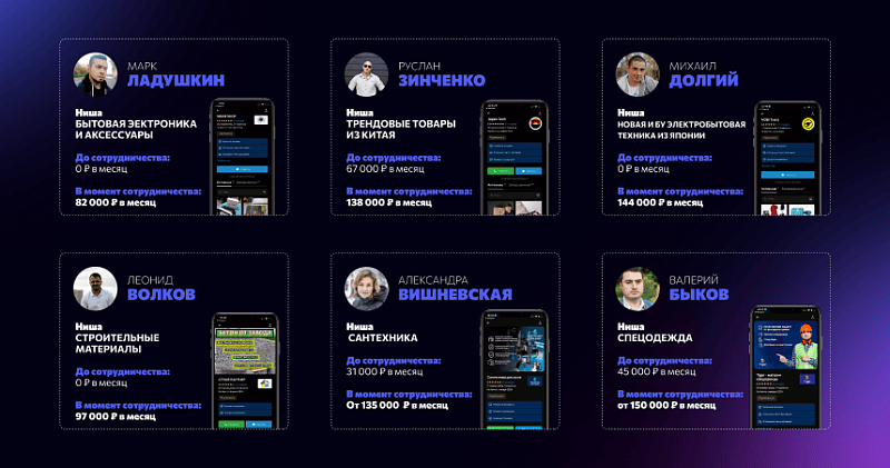В течение сотрудничества вы можете как сменить категорию товаров, так и открыть новый магазин с новой категорией товаров. - Сопровождение до результата