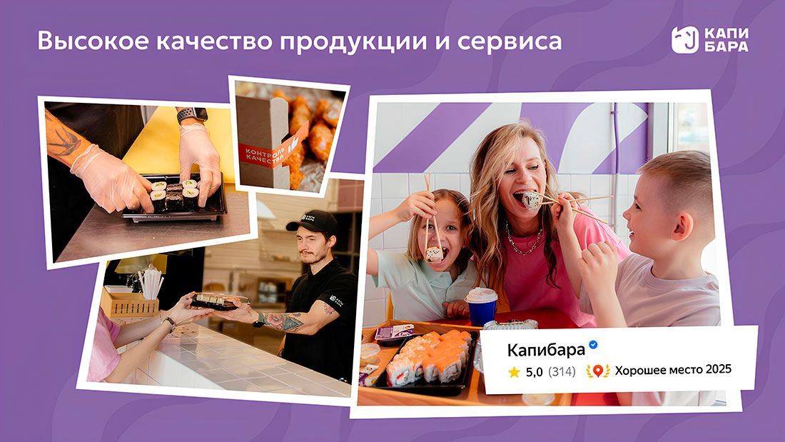 «Капибара» — это франшиза доставки суши и пиццы с проверенной бизнес-моделью и финансовыми гарантиями. Первый суши-бар мы открыли в 2015 году, а уже через год масштабировали концепцию через франчайзинг. Сегодня сеть объединяет более 60 заведений в 47+ городах России, Беларуси и Польши.