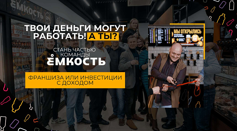 Франшиза «Ёмкость» — маркет-бар с круглосуточным форматом и легальной розничной продажей алкоголя. Высокий спрос, отсутствие конкурентов ночью, мощная поддержка от выбора локации до открытия, персональный менеджер, быстрый старт (до первой выручки — от 60 дней), можно управлять бизнесом дистанционно или инвестировать под доверительное управление.