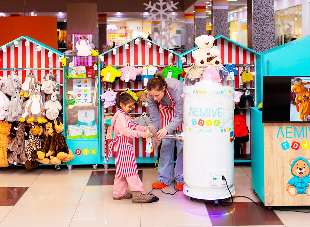 Ребенок выбирает игрушку, наполняет ее вместе с аниматором, вкладывает «сердечко с характером», одевает, получает свидетельство о рождении и фото. Концепция объединяет розничную торговлю с интерактивным вовлечением клиентов: это не просто точка продаж, а пространство, где создается атмосфера творчества, игры и радости для детей и родителей.