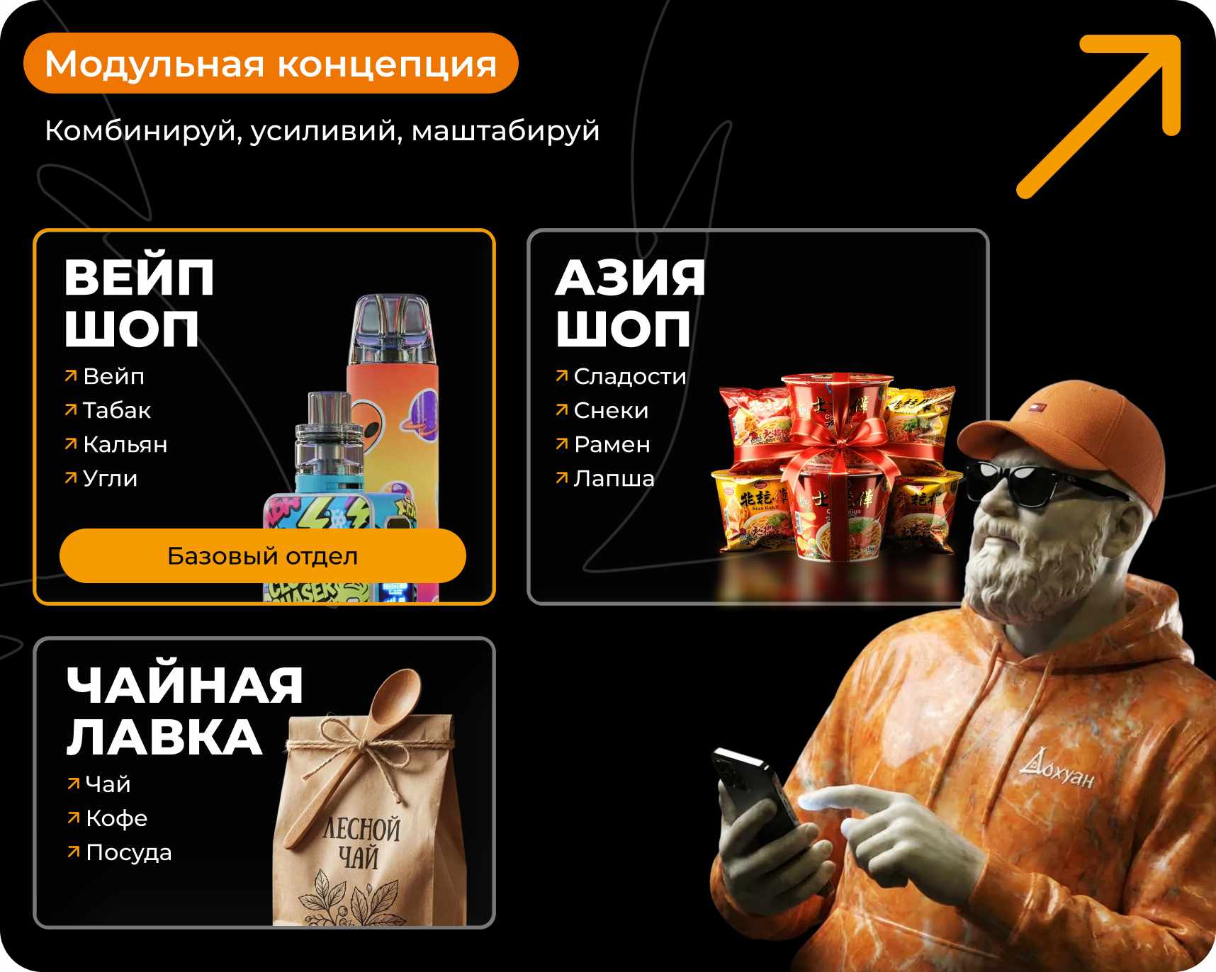 - Отстройка от конкурентов — модульный формат отличает магазин от классических табачных точек.