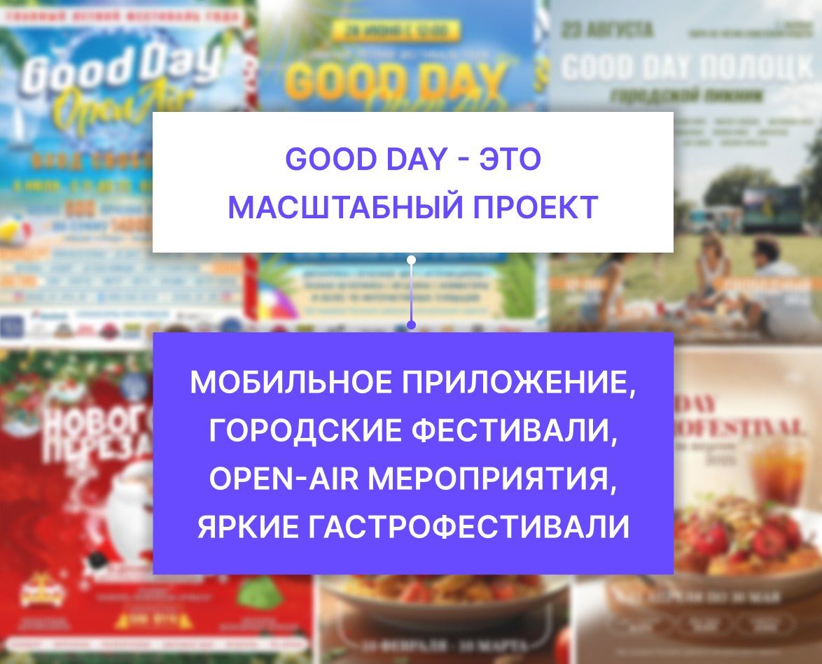 Good Day — это масштабируемый бизнес, сочетающий онлайн-платформу и офлайн-активности, которые усиливают узнаваемость бренда и рост аудитории.