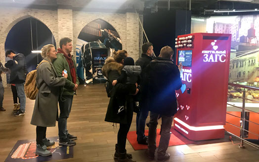 - Виртуальный ЗАГС устанавливается в зонах с высоким пешеходным трафиком: ТРЦ, кинотеатры, парки, кафе, массовые мероприятия.