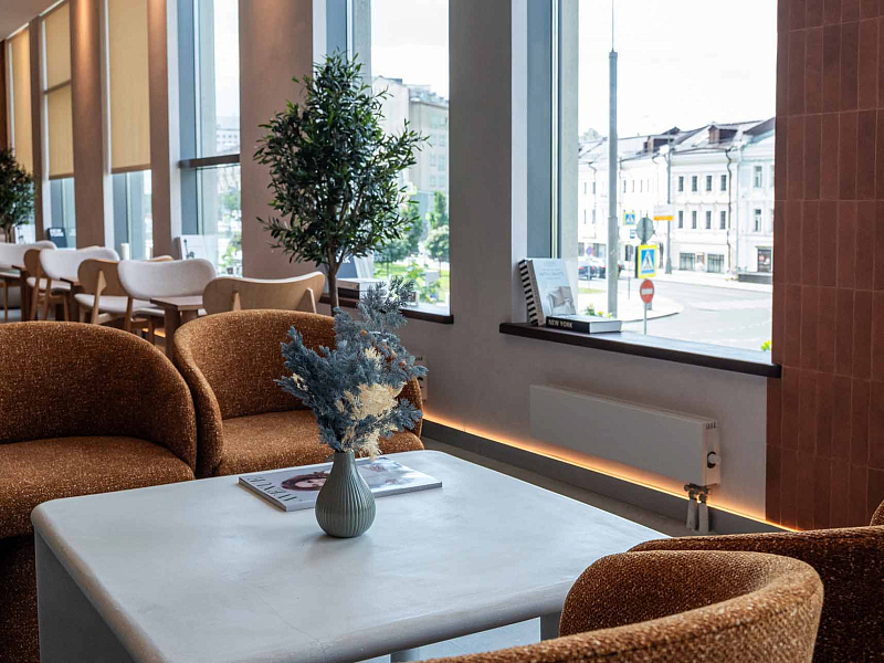 - Затем пройти в уютную лаунж-зону.