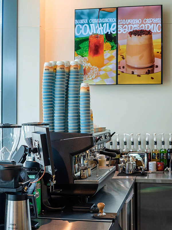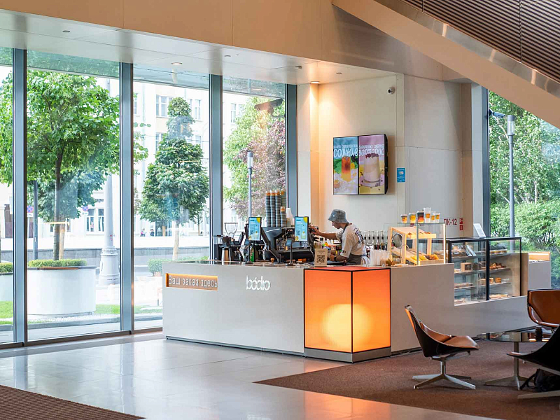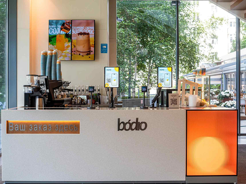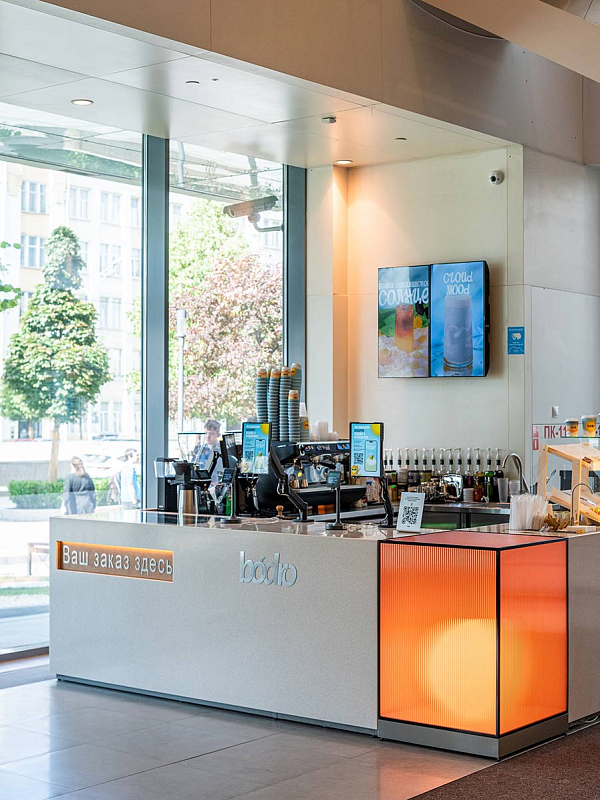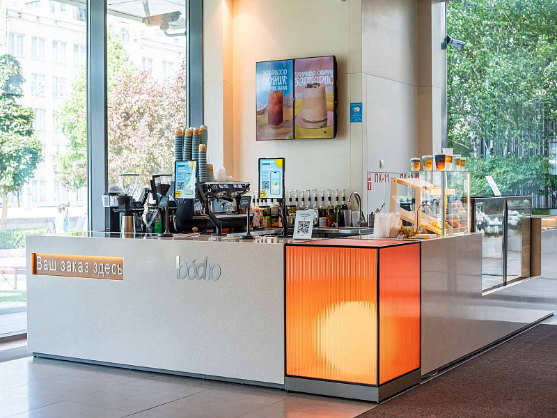 Формат bódro позволяет отказаться от очередей к кассам. Все процессы автоматизированы: от заказа в мобильном приложении — с возможностью самостоятельной кастомизации напитка — до выдачи напитка на интерактивной панели.