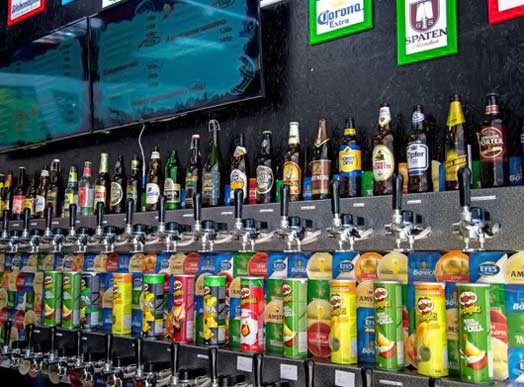- 30-50 сортов разливного пива, бутылочное пиво, алкогольные и безалкогольные напитки
