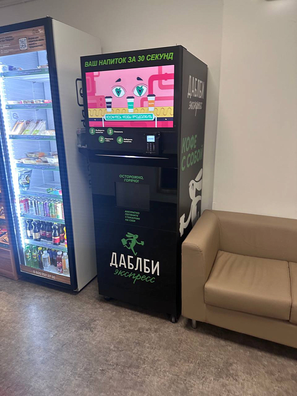Формат «Даблби Экспресс Вендинг» — это технология, упакованная в компактный форм-фактор вендинга. За счет полной автоматизации и стабильной рецептуры напитки вендинга продаются по предельно доступной цене при сохранении фирменного качества «Даблби».