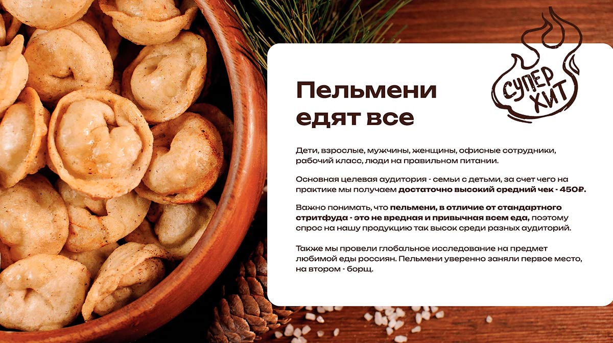 Наша идея — новый взгляд на традиционный продукт любимый всеми. Поэтому мы вернулись к истокам и придумали формат стрит-пельменной.