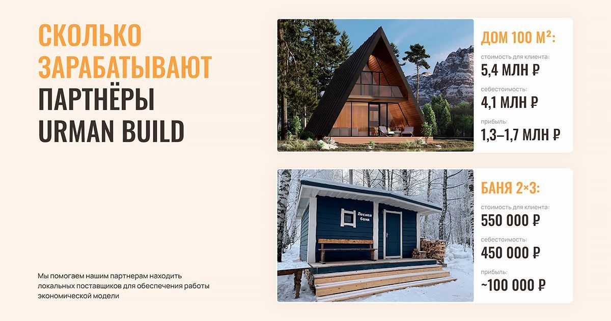 Вы выбираете «Урман Билд», если хотите войти в растущий рынок загородного строительства не как одиночка, а как владелец готовой системы. Здесь есть место вашей прибыли, а не головной боли. Мы не просим вас разбираться в каркасах. Мы показываем, как следовать инструкциям, которые уже приносят нашим партнерам от 200 000 рублей в месяц первые полгода. Все остальное — наша работа.