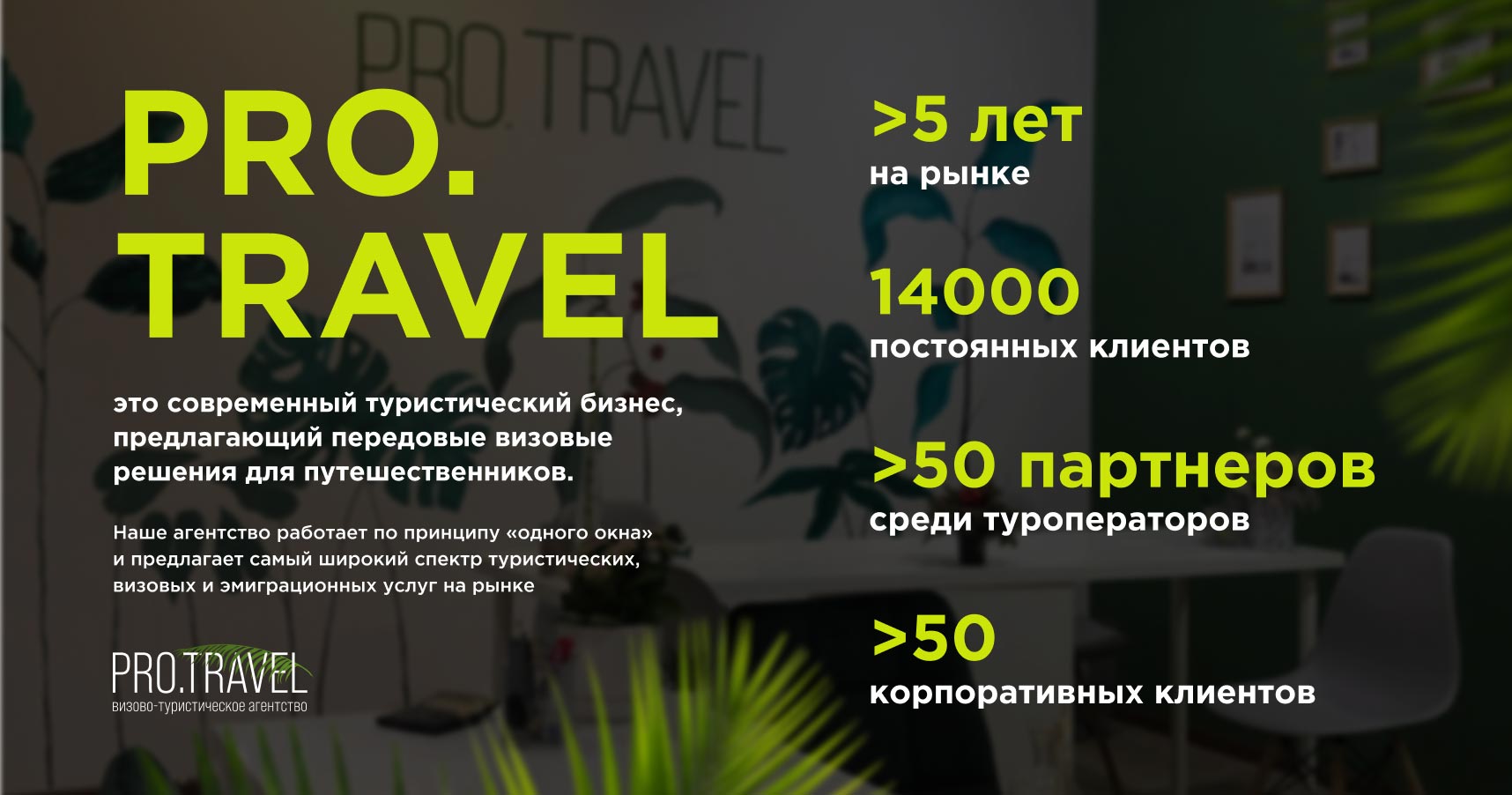 ProTravel — это современные туристические агентства, которые предлагает путешественникам инновационные решения. Агентства предоставляют полный спектр туристических, визовых и эмиграционных услуг по принципу «единого окна».