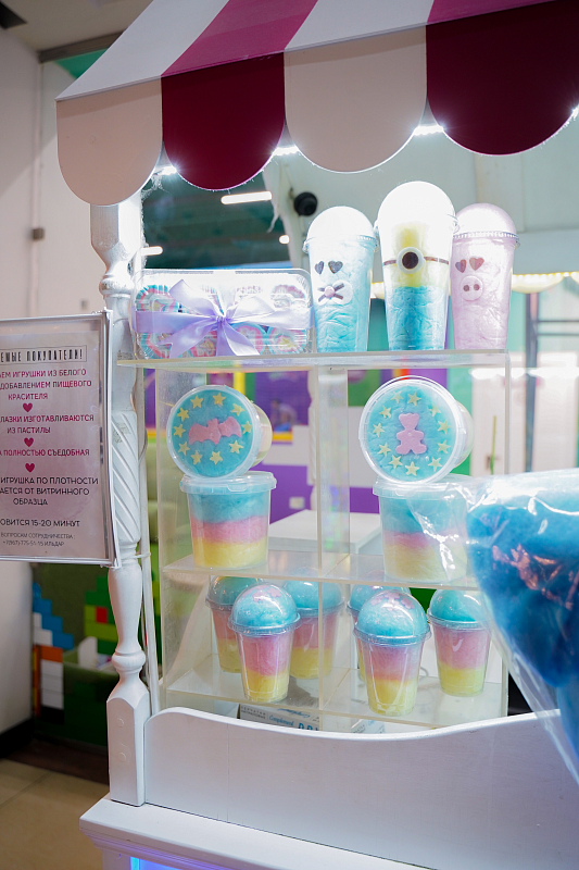 - Уникальный продукт, который невозможно найти у конкурентов — фигурная сахарная вата в герметичной упаковке.