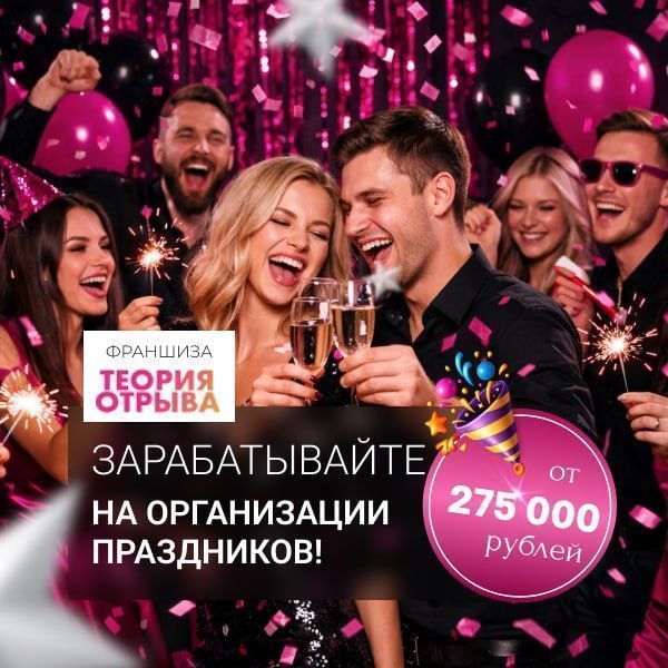 Франшиза «Теория Отрыва» — это бизнес по организации ярких и современных развлекательных мероприятий, вдохновленных популярными теле- и YouTube‑шоу. Партнёр получает проверенную модель с 2019 года, комплексный подход «под ключ», поддержку на всех этапах, широкий выбор программ и высокую рентабельность.