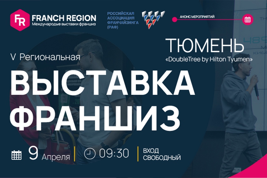 09 апреля в г. Тюмень состоится региональная выставка франшиз Franch Region. Франшиза — идеальный вариант для инвестиций с наименьшими рисками.